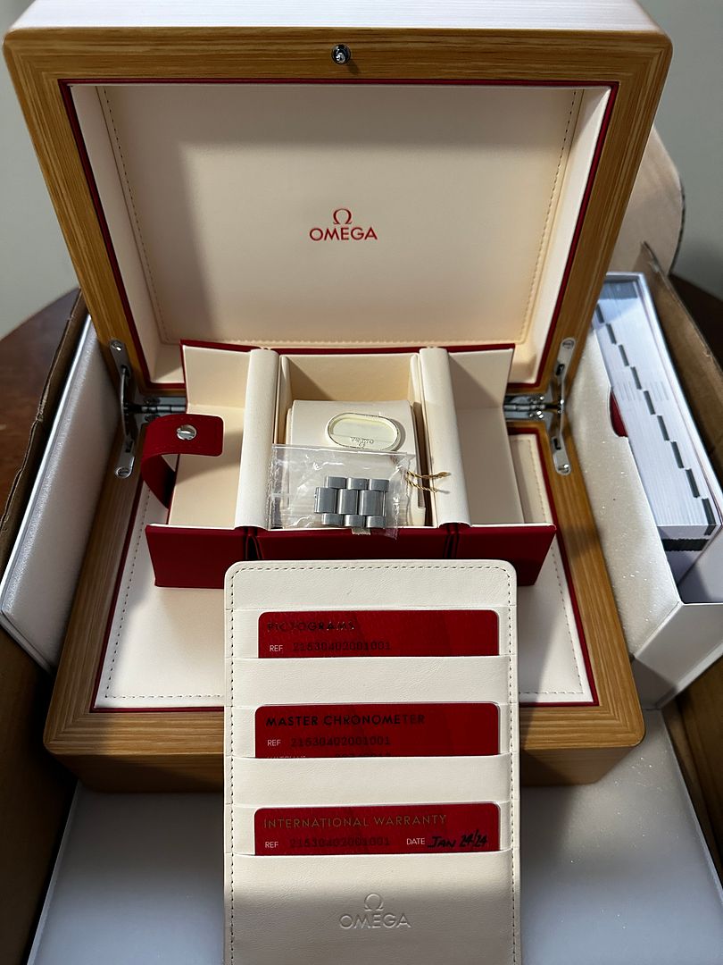 Omega Seamaster planet Ocean 600m 39.5mm from 2025 complete with boxes booklets warranty cards and all links.
