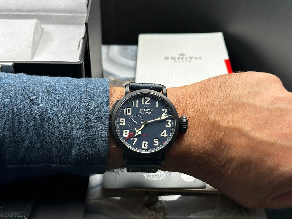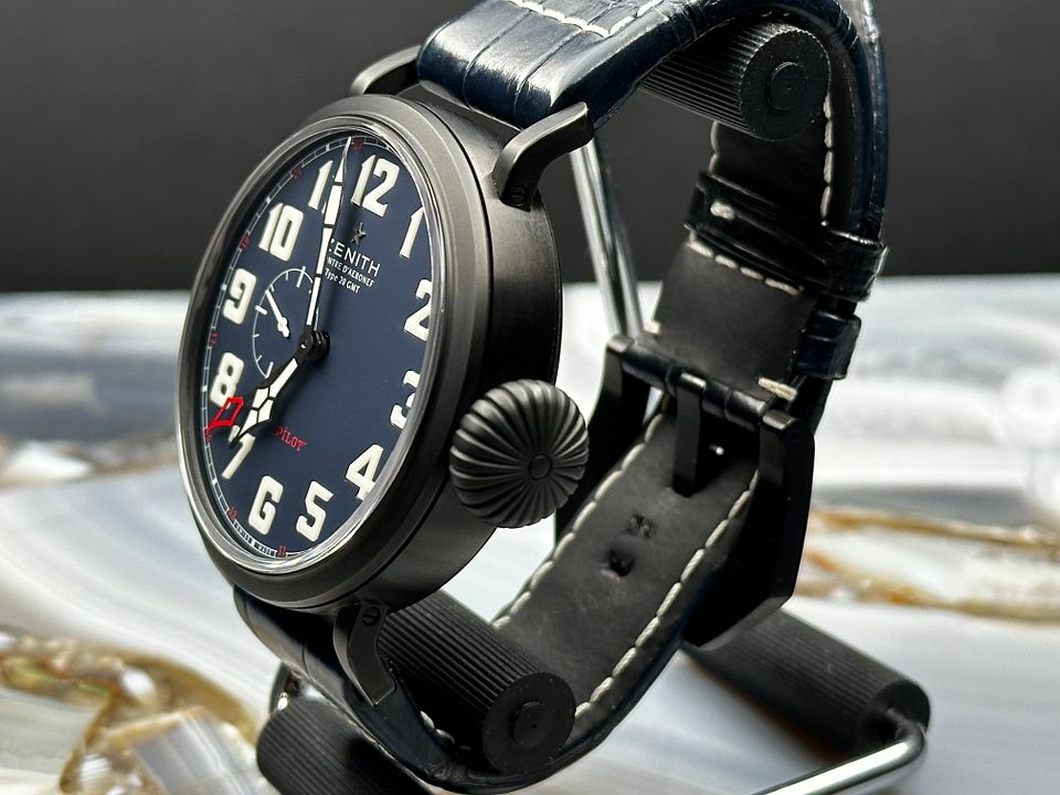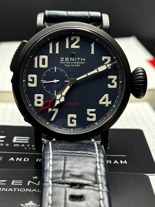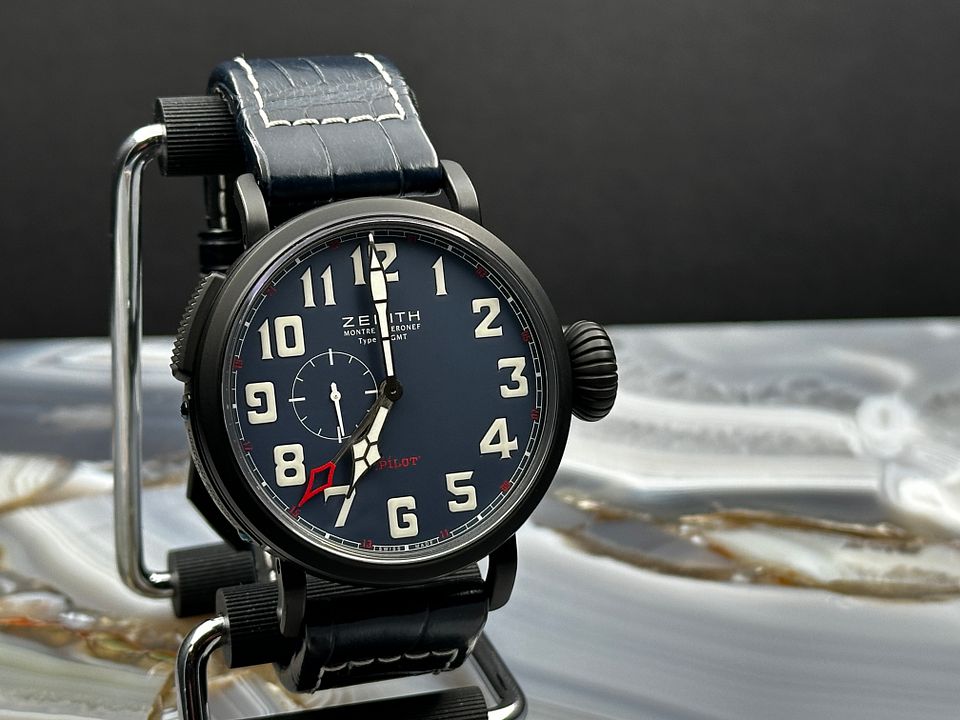 Zenith Pilot 48 GMT Limited Edition reference 96.2436.693/51.C779 from 2018 complete with boxes booklets and warranty card stamped and dated.