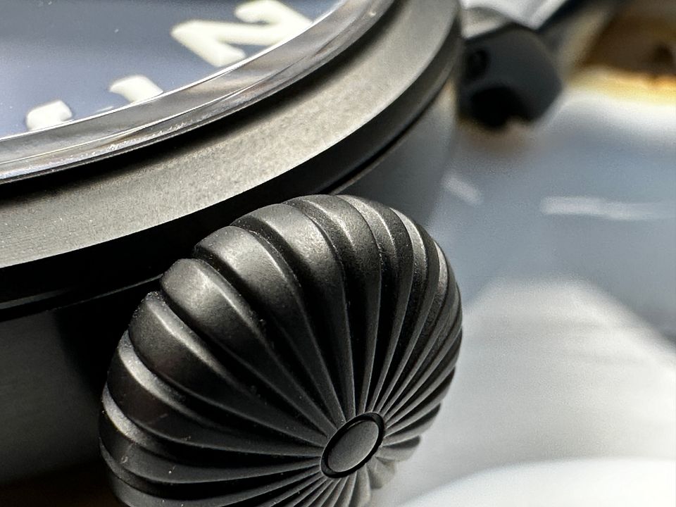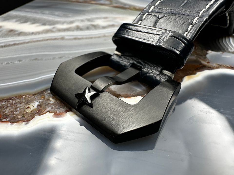 The finish on the case dial hands strap buckle and knob are literally flawless.
