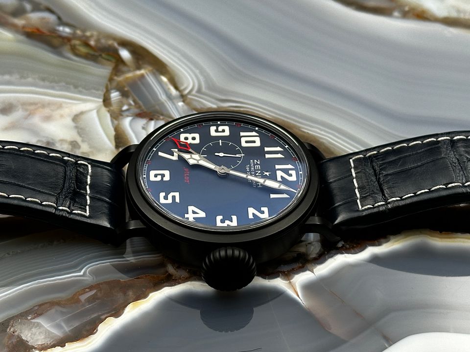 If you are looking for a BIG KNOB to wind well here it is on this mint Zenith Limited Edition.